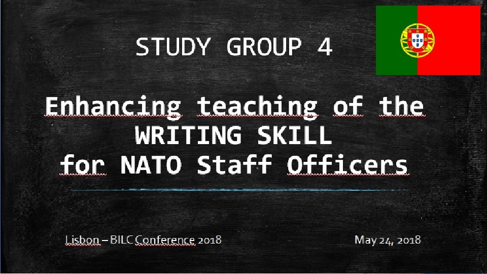 Study Group Task The Language Needs Analysis (LNA) of ACT positions performed by BILC, and reported on last year demonstrated that, among other findings, writing ability of incumbents was often well below expectations of the posts. Writing is a skill that requires specific training and attention, but in many training systems, insufficient time seems to be assigned to the development of this skill. The purpose of this Study Group is to discuss best practices in teaching writing as a general proficiency skill coupled with effective, specific-purpose content writing (NATO genre writing). The Study Group will outline a set of recommendations on how nations should approach the task of increasing students’ writing proficiency, and what strategies they could use to attain this goal. A variety of authentic writing samples gathered at ACT will be provided to participants beforehand, as well as the STANAG 6001 L 2 and L 3 writing descriptors, and LNA report recommendations.