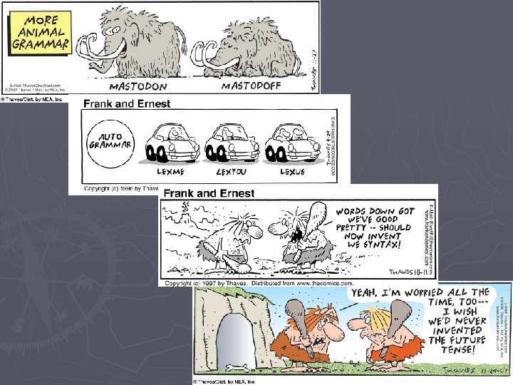 Give me Ambiguity, or… ► Defining Ambiguity: ► Types of Ambiguity: § Structural: when constituents can be grouped in more than one way § Lexical: when a word can be a member of more than one lexical category § Semantic: when a word or phrase (or gesture) can mean more than one thing. [Also frequently called http: //www. gally. net/leavings/01/0137. html lexical!]