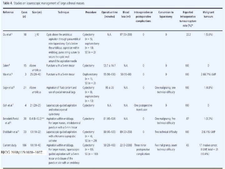 Gynecologic Oncology 105 (2007) 409– 413 results suggest that laparoscopic comprehensive surgical staging of EOC is as safe and adequate as the standard surgical staging performed via laparotomy.