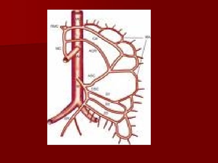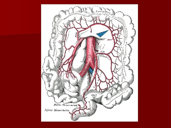 Vascularization du gros intestin n Artere mesenterique superieure n Artere mesenterique inferieure