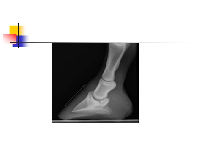 Distal Phalanx (pedal bone) n Lateral View n n n Doropalmar/Dorsoplantar View n n n X-ray beam is directed horizontally toward pedal bone. View should include entire hoof. Cassette is placed directly behind the foot and x-ray beam is directed horizontally. View should include entire hoof. Dorsoplamar/Dorsoplantar Oblique View n n Cassette is placed in tunnel cassette holder Foot is centered on cassette and x-ray beam is angled to ground and directed at the hoof wall.