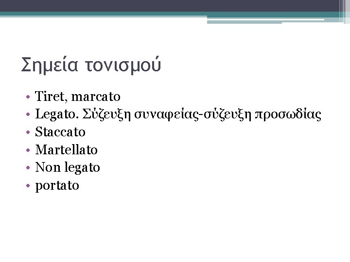 Largo larghetto adagio andante moderato allegro presto Larghissimo Slides: 6 Download presentation Ενδείξεις • Largo, larghetto, adagio, andante, moderato, allegro, presto. • Διαβαθμίσεις: Larghissimo, largetto, lento, adagietto, andante, andantino, moderato, allegro moderato, allegretto, alegro, vivace, presto, prestiss imo. Βοηθητικοί όροι: Molto, assai, ma non tropo, piu, quasi, non tanto, poco, meno. Επιτάχυνση-Επιβράδυνση • Accelerando, stretto, stringendo, veloce, piu mosso • Ritardando, rallentando, allargando, ritenuto, meno mosso. • Επαναφορά του tempo: • Tempo primo, a tempo. • Ελευθερίες: • Ad libitum, ad piacere, rubato.