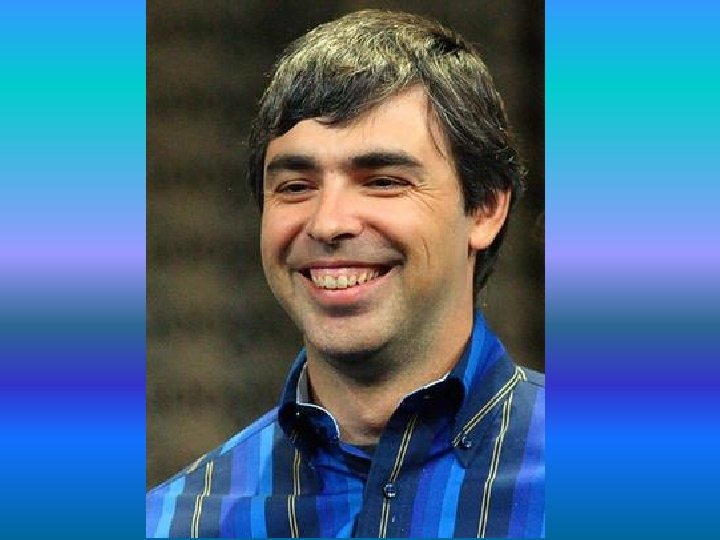 LARRY PAGE Page nació en Míchigan, Estados Unidos, el 26 de marzo de 1973. Es hijo de dos docentes universitarios, Gloria Page y Carl V. Page. Aunque judío por parte de madre, su educación fue laica. Desde los dos años de edad asistió en Lansing a una escuela del método Montessori. La pasión de Page por los ordenadores empezó a los seis años, y su interés por la tecnología y los inventos a los doce. Siguiendo los pasos de sus padres, y bajo su orientación, cursó estudios en la East Lansing High School y se graduó con honores en la Universidad Estatal de Míchigan, obteniendo un grado en Ingeniería de Computadores (Computer Engineering). Se doctoró en Ciencias Informáticas en la Universidad de Stanford. El Instituto de Empresa lo premió con un máster honorífico en Administración de Empresas y fue el primero en recibir el premio Alumni society recent engineering graduatede la Universidad de Míchigan. Durante su doctorado en Stanford conoció a Sergey Brin. Juntos desarrollaron y pusieron en marcha el buscador Google, que empezó a funcionar en 1998. Google está basado en la tecnología patentada Page. Rank. Se dice que le pusieron este nombre al buscador por su semejanza con la palabra gugol, que en inglés quiere decir 10 elevado a 100 (10^100). Page fue presidente de Google junto con Brin hasta 2001, año en que decidieron contratar a Eric Schmidt. Page dirige Google junto a Sergey Brin y Schmidt. A fecha 4 de abril de 2011 Eric Schmidt cesa su actividad como CEO de Google para dar paso a Larry Page.