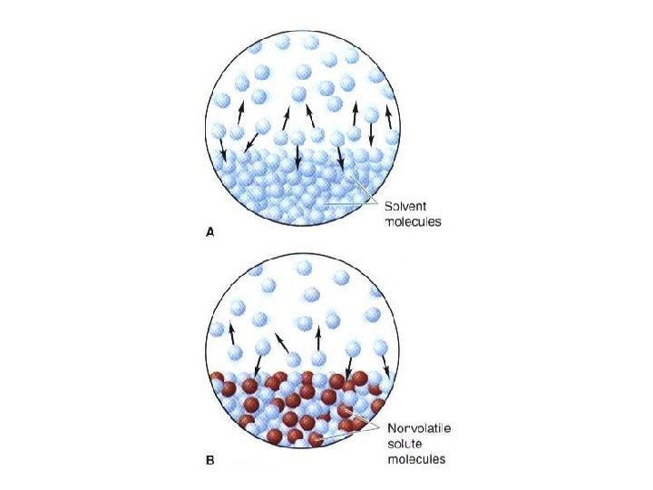 Penurunan Tekanan Uap • Untuk solut dengan karakter non volatil dan non elektrolit seperti gula, solut ini tidak terdisosiasi dan tidak menguap • Tekanan uap pelarut murni lebih besar dari larutan karena pada yang murni kecenderungan uap memicu entropi besar • Sedangkan pada larutan dengan solut entropi besar sudah ada dalam larutan sehingga penguapan menjadi berkurang • Hukum Raoult: Psolven = Xsolven × P 0 solven Xsolven + Xsolut = 1 atau Xsolven = 1 - Xsolut