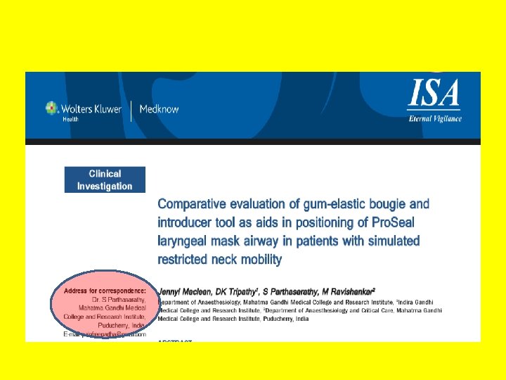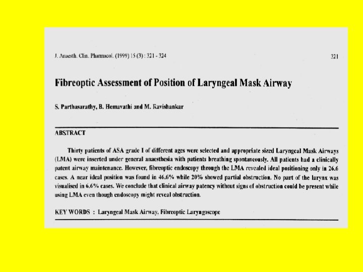 Laryngeal mask airway Dr. S. Parthasarathy MD. , DA. , DNB, MD (Acu), Dip. Diab. DCA, Dip. Software statistics. Ph. D ( physiology), ( IDRA )
