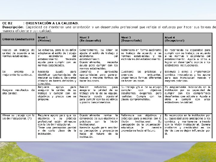 Modelo de Competencias Gestión Escolar de Calidad – FCh Competencia Conductual Es aquello que las personas de alto desempeño están más dispuestas a hacer en forma continua y que les permite producir resultados superiores. Se relacionan con los comportamientos y actitudes laborales. Ej: Orientación a la Calidad, Trabajo en equipo. Se expresan en descriptores conductuales que las hacen observables y medibles. Las Competencias Conductuales seleccionadas son aquellas que se requieren para poder llevar adelante la estrategia de la organización y por tanto son transversales.