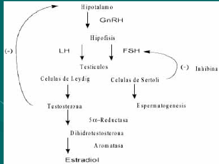 “CONTROL DE LAS FUNCIONES SEXUALES MASCULINAS POR HORMONAS DEL HIPOTALAMO Y DE LA ADENOHIPOFISIS” Una parte importante del control de las funciones sexuales, tanto en el varón como en la mujer, comienza con la secreción de hormona liberadora de gonadotropinas (Gn. RH) por el hipotálamo. Esta hormona a su vez estimula la adenohipofisis para secretar otras hormonas llamadas gonadotropinas: hormona Liteinizante (LH) y hormona foliculostimulante (FSH). A su vez, la LH es el estimulo primario para la secreción de testosterona por los testículos; la FSH estimula principalmente la espermatogenesis.