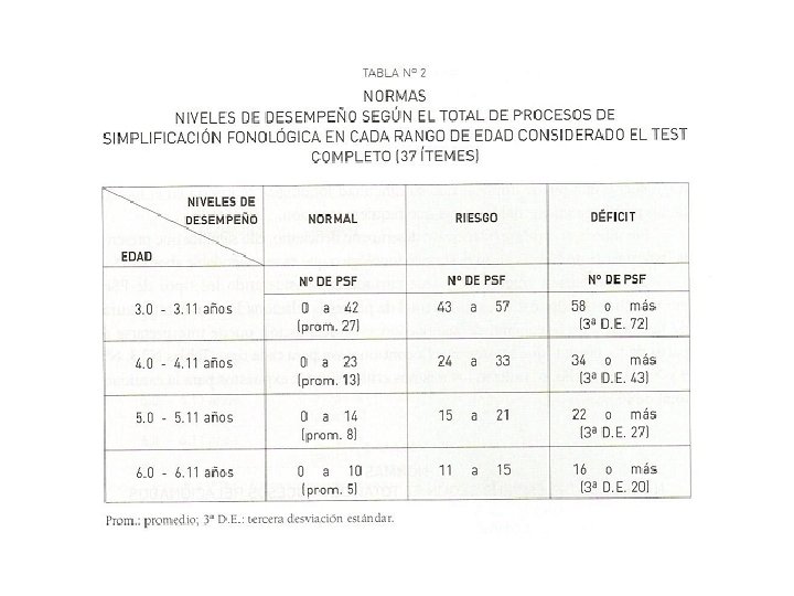 Ø 4 años- 4, 6 años: /s/, Dífonos consonánticos /l/. Ø 4, 4 años- 4, 6 años: Fonema /r/ vibrante simple. Ø 4, 6 años – 4, 9 años: Dífonos consonánticos /r/. /dr/ último. Ø 4, 9 años: Fonema /r/ múltiple.
