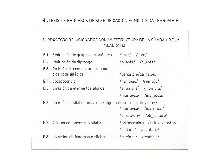 • Nótese que hay sonidos que el niño posiblemente ya ha articulado en la etapa del balbuceo. Pero que con dificultad logra producir dentro de las palabras: se trata de sonidos que deben ser articulados ahora dentro de un sistema, en secuencias predeterminadas, y no de manera asistemática o al azar como antes. • Algunos autores afirman que este fenómeno es “como si el niño comenzara a aprender de nuevo los sonidos”, cuando comienza a utilizar su lengua de manera significativa.