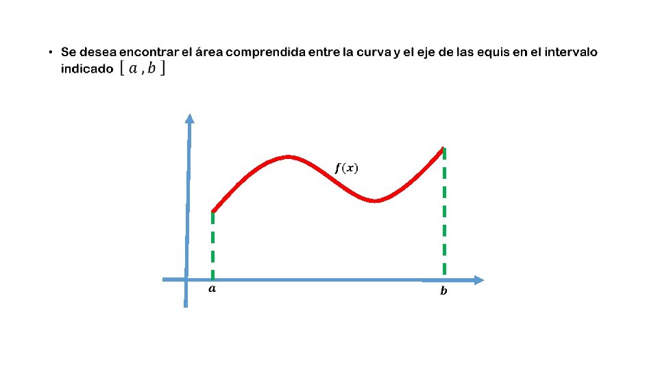 • La suma se denomina sumas de Riemman. • Cuando el numero de divisiones en el intervalo tiende hacia el infinito, el limite de las sumas de Riemman representan el área bajo la curva, y recibe el nombre de integral definida en el intervalo dado