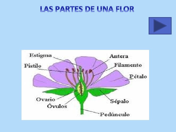 Los órganos reproductores de las plantas están en las flores. En las flores hay órganos protectores y órganos reproductores. Los órganos protectores protegen las partes internas de la flor. Son: • La corola, o conjunto de pétalos. • El cáliz, o conjunto de sépalos. Los órganos reproductores los utiliza la planta para reproducirse. Son los estambres y el pistilo. Los estambres son como unos pelitos que al final tienen una bolsita llena de granos de polen. Los granitos de polen salen en primavera. Dentro del pistilo están los óvulos. Cuando el polen cae dentro del pistilo, se une al óvulo y forma una semilla. De cada semilla sale una planta nueva.