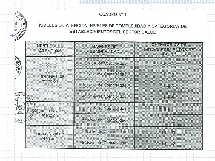 Las UBAPS Unidades de atención de salud de primer nivel. Categorización: Nivel I-3 / I-4 n Centro de Salud sin internamiento, con especialidades básicas. n No resuelve los problemas de mediana o alta complejidad. n La asignación de población adscrita ha generado problemas. ¿Gestión pública o privada?