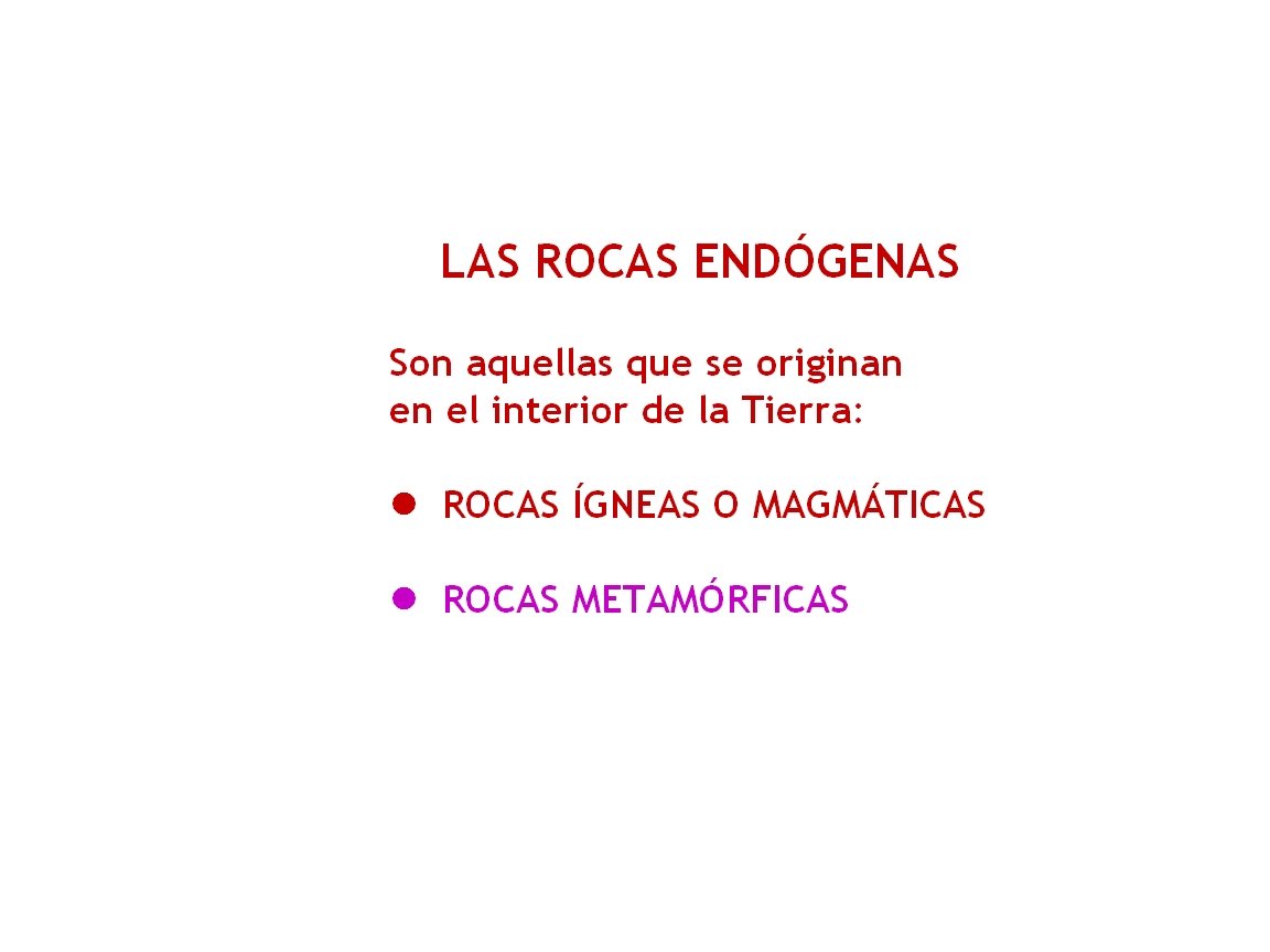 LAS ROCAS METAMÓRFICAS *Las rocas sometidas a altas presiones y elevadas temperaturas experimentan un proceso llamado metamorfismo, que produce cambios en el aspecto, la estructura y el tipo de minerales que integran las rocas. (Metamorfosis significa cambio de forma) *El metamorfismo se produce en zonas de la corteza terrestre donde hay altas temperaturas y elevadas presiones: *En puntos donde las rocas se encuentran en contacto con bolsas de magma o con grietas por las que ese magma asciende. *En las cuencas oceánicas, donde las capas de sedimentos más profundas se van hundiendo.