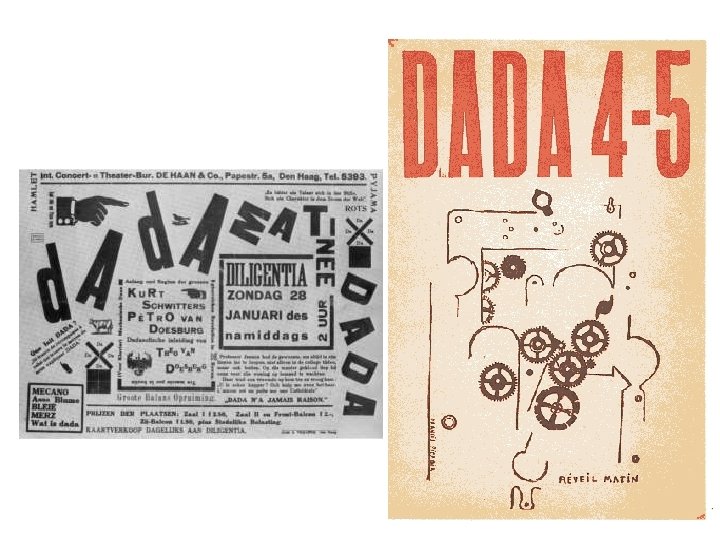CARACTERÍSTICAS • Integración de técnicas distintas con empleo de fragmentos de materiales (collage y décollage) y objetos de desecho cotidiano. • Niega el Arte y cualquier canon impuesto. • Protesta contra todo convencionalismo volviendo a lo instintivo e irracional. • Liberación del subconsciente (se produce una transición al surrealismo y al arte abstracto). • Motivaciones de disociación. • Auge del disparate.