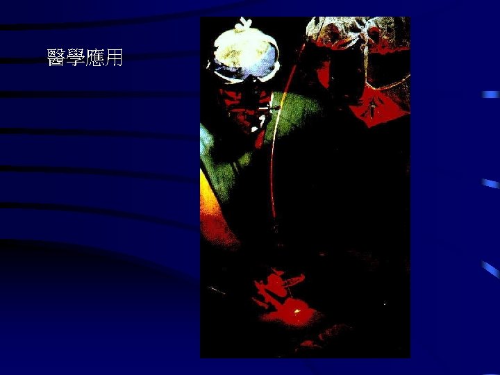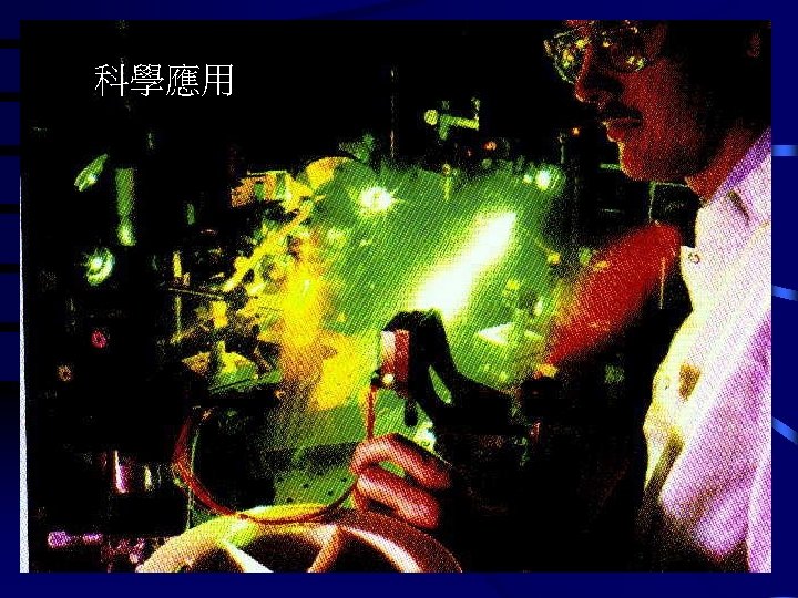 雷射簡介 : 雷射分類 • Operation Type : – Continuous Wave Laser – Pulse Laser • Operation Wavelength : – IR Laser – Visible Laser – UV Laser – X-ray Laser