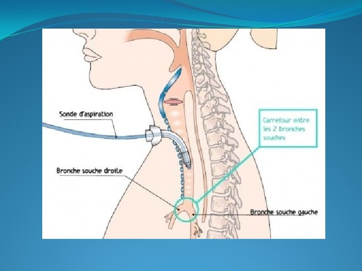 Objectifs �Maintenir la perméabilité des voies aériennes �Libérer les voies aériennes pour améliorer la ventilation �Prévenir la formation d’un bouchon muqueux �Améliorer les échanges gazeux �Prévenir une pneumopathie d’inhalation �Eviter l'obstruction de la sonde d'intubation ou de la canule de trachéotomie