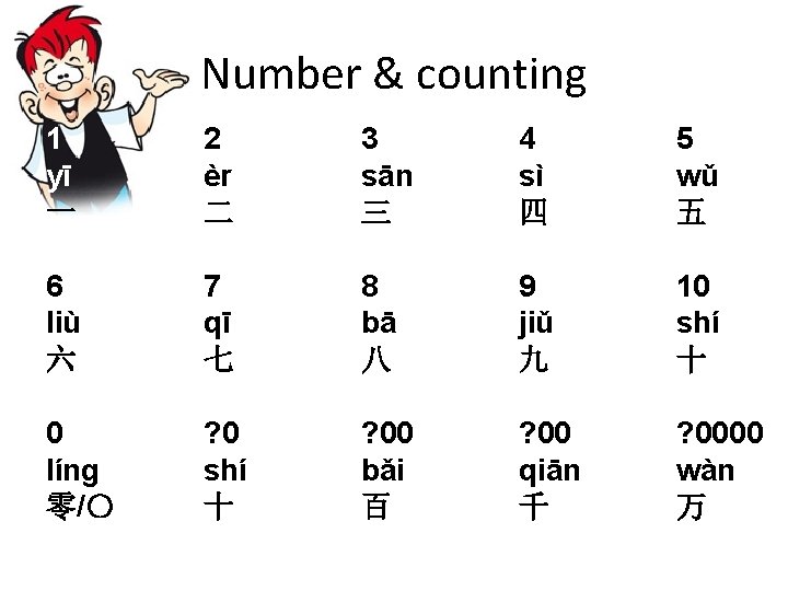 Time and chronical units Date nián yuè rì xīng qī 年 月 日 星 期 2015. 10. 6 Tue— èr líng yī wǔ nián shí yuè liù rì xīng qī èr Time shí / diǎn fēn (miǎo) 时/点 分 (秒) 7. 49 qī shí/diǎn sì shí jiǔ fēn