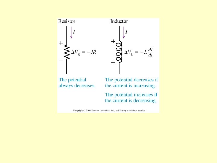 Inductance Potential difference across a resistor depends on the current Potential difference across an inductor depends on the rate of change of the current