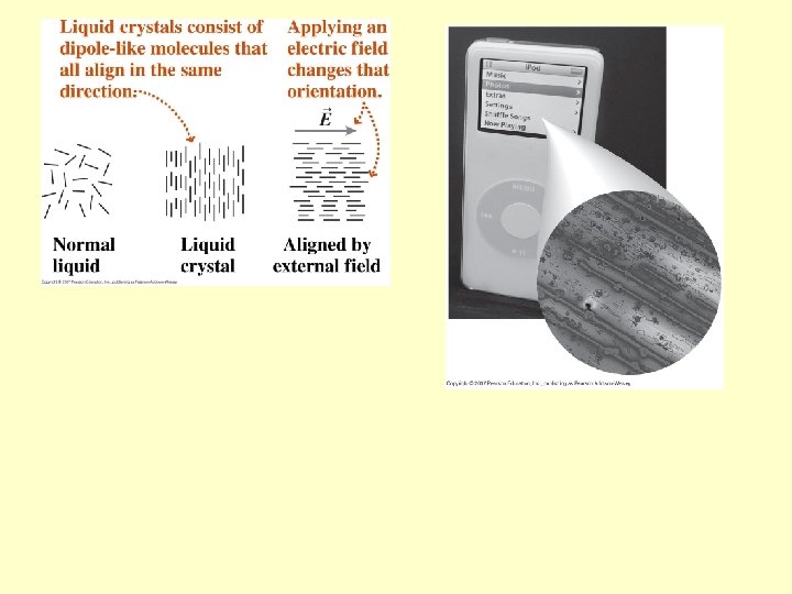 Dielectrics Molecular dipoles in a dielectric align with the external field and reduce the net field within the dielectric Applications (see p 340): microwave cooking and liquid crystals
