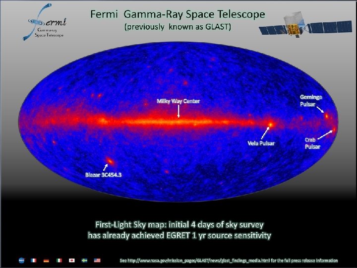 Fermi Gamma-ray Space Telescope Do. E – NASA – international partnership GLAST renamed Fermi by NASA on August 26, 2008 http: //fermi. gsfc. nasa. gov/ “ Enrico Fermi (1901 -1954) … was the first to suggest a viable mechanism for astrophysical particle acceleration. This work is the foundation for our understanding of many types of sources to be studied by the Fermi Gamma-ray Space Telescope, formerly known as GLAST. ” “ Questo nuovo nome e' stato selezionato con un sondaggio pubblico realizzato dalla NASA e che ha ricevuto piu' di 12 mila risposte. Oltre ad avere un legame diretto con la scienza dei raggi-gamma della nostra nuova missione, Fermi ha un significato speciale per il Do. E, l'ASI e l'INFN, tre agenzie che hanno maggiormente contribuito alla missione" Jon Morse Director of Astrophysics Division, NASA HQ, Washington DC