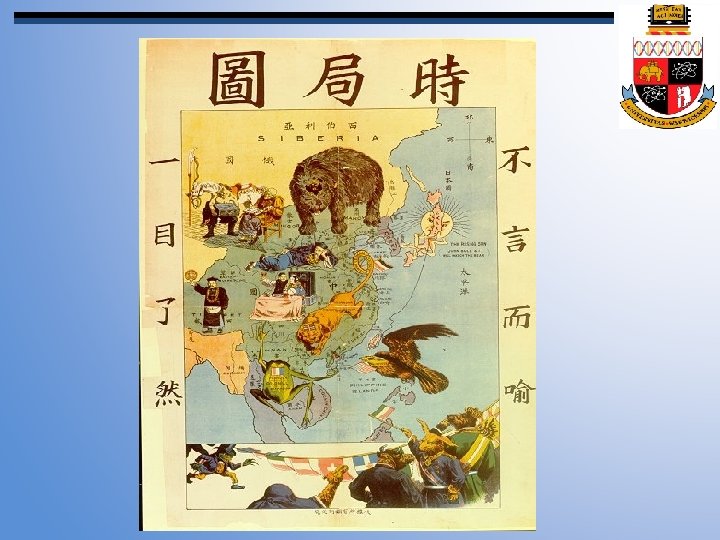 The Changing Context • • • 1861: Zongli Yamen 1864: international law 1873: foreign audience no kowtow 1876: diplomatic missions Universal empire (天下) to nation-state (國 家) • Western perception – Mutiny of 1857 in India -> British policy in China changed to moderation (gradual decline)