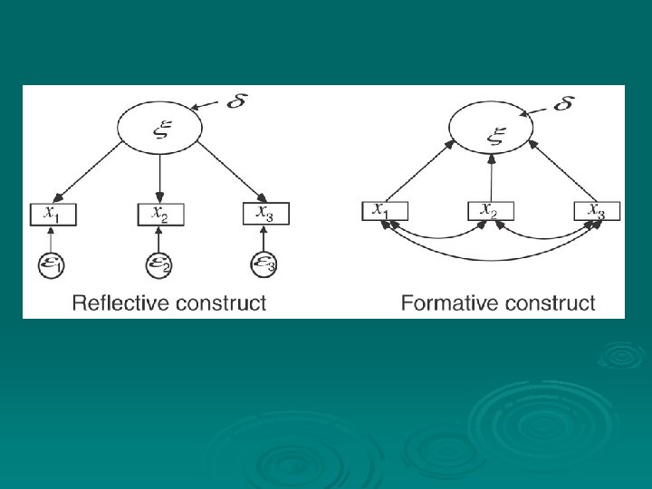 Background Ø LV and SEM models originate in psychological and educational applications, but widening range of applications, including clinical research Ø Latent variables (also called constructs, common factors etc. ) based on sets of different indicators (or instruments, items, raters, etc), as against replicate readings on the same indicator Ø Multiple indicators are observed measures of underlying latent variable or variables: hence “measurement model”