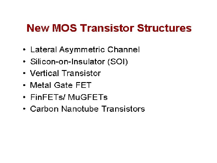 Conclusions • MOS transistors are conceptually simple devices • Both NMOS and PMOS transistors can be made, and effectively combined in CMOS circuits • Transistor scaling leads to great benefits, and has driven Moore’s law during the last three decades • Transistor down-scaling leads to some problems, which have been effectively combated by improved transistor design • Scaling is likely to continue till at least 2010, when transistor dimensions will be less than 0. 05μm