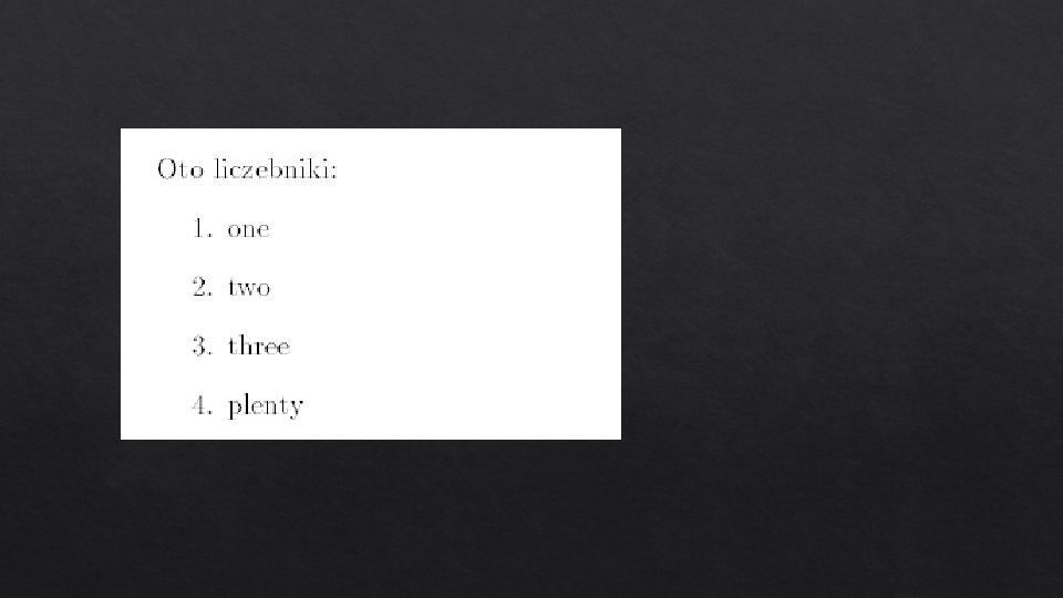 ![enumerate documentclass[a 4 paper, 11 pt]{article} usepackage{polski} usepackage[cp 1250]{inputenc} usepackage{enumerate} begin{document} begin{enumerate} item Pierwszy enumerate documentclass[a 4 paper, 11 pt]{article} usepackage{polski} usepackage[cp 1250]{inputenc} usepackage{enumerate} begin{document} begin{enumerate} item Pierwszy](https://slidetodoc.com/presentation_image/550c9f33b60648bca22a88b09231180c/image-54.jpg)