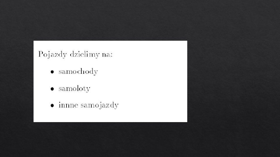itemize documentclass[a 4 paper, 11 pt]{article} usepackage{polski} usepackage[cp 1250]{inputenc} usepackage{enumerate} begin{document} begin{itemize} item Pierwszy punkt item Drugi punkt item Trzeci punkt item ldots end{itemize} end{document}