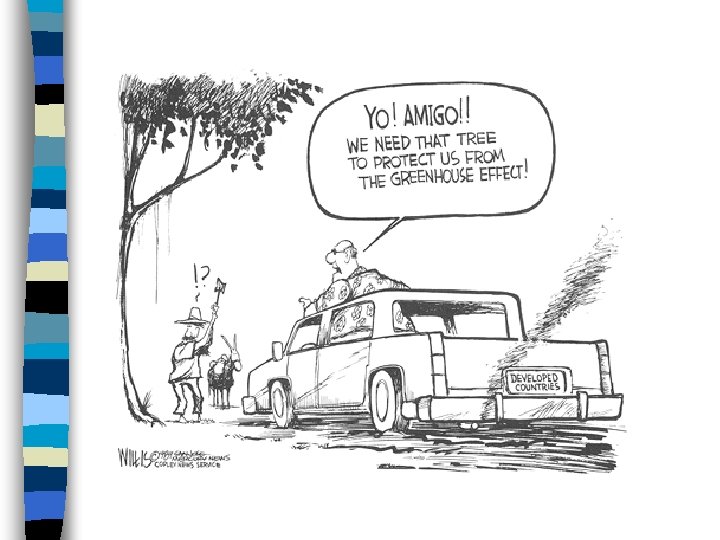 Deforestation n Deforestation is the most common environmental problem in Latin America. Most of the islands in the Caribbean and the countries of Central America have very little forest left. n The Amazon Rainforest is being cut down for farmland, urban development, and the export of wood.