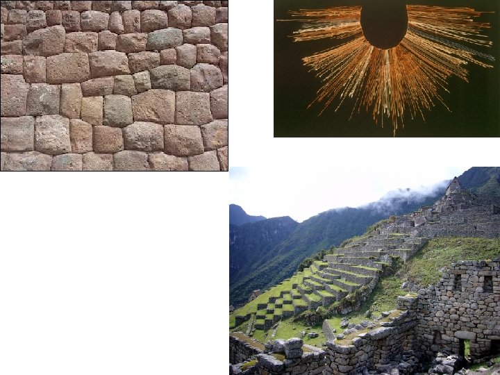 Inca • Located in South America • By 1400, the Inca empire included 12 million people • Capital city: Cuzco “City of the Sun” (Sun god was very important)