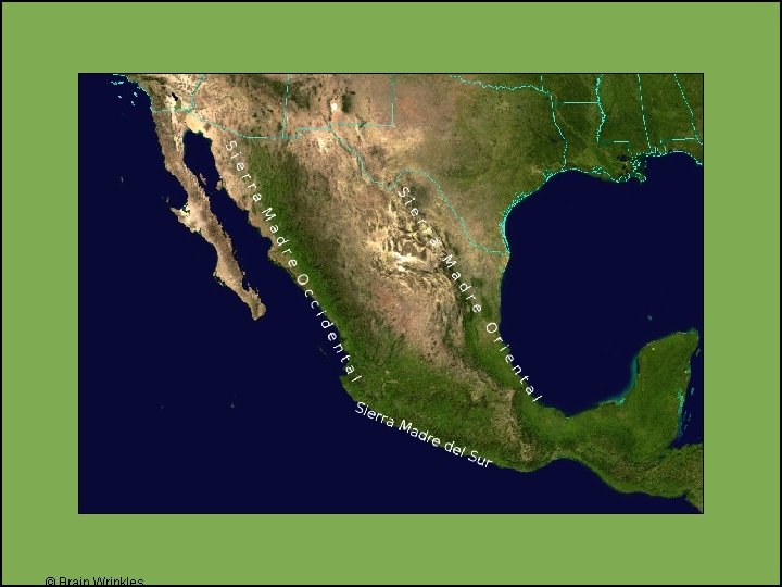 Sierra Madre Mountains • A mountain system in Mexico • Three major chains: the Sierra Madre Occidental in the west, the Sierra Madre Oriental in the east, and the Sierra Madre del Sur, which extends along the southern coast. • The Sierra Madre range contains some of the highest mountains and volcanoes in