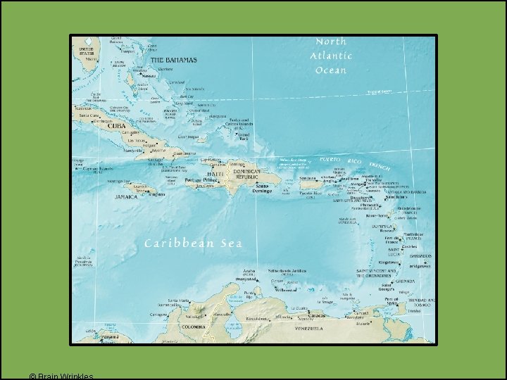 Caribbean Islands • The smaller islands are made of coral. • (Skeletons of tiny sea animals, rock-like substance) • The larger islands are tops of underwater mountains. • Examples: Cuba, Jamaica