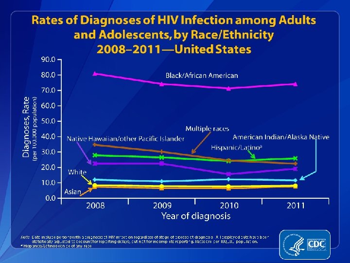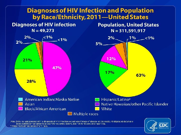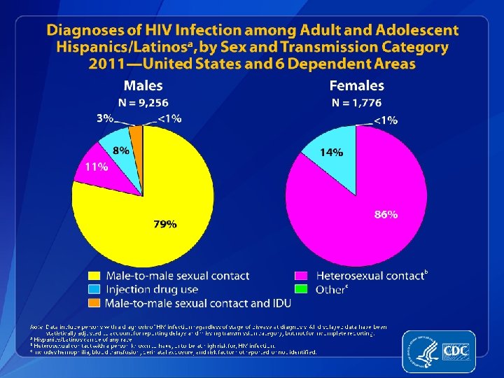 HIV and Latinos � � The HIV epidemic is a serious threat to the Hispanic/Latino community. Latinos are disproportionately affected by HIV. In 2010, while representing approximately 16% of the total US population, Latinos accounted for 21% of new HIV infections in the United States. Latinos also accounted for 21% of new AIDS diagnosis in 2011. Latino MSM are particularly affected by HIV. CDC MMWR Vol. 61/No 40