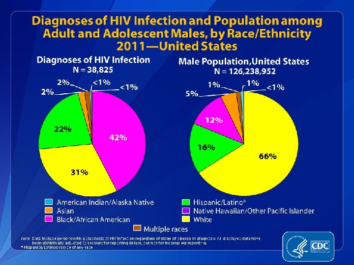 Population Estimated HIV/AIDS Cases 9, 848, 011 61, 700 Overall, Race/Ethnicity 13. 3% 0. 5% 8. 8% 30. 1% 47. 3% HIV/AIDS Cases 3. 0% 1. 0% 21. 0% Black Latino White 35. 0% 40. 0% Asian/PI NA/AI Data Source: U. S. Department of Commerce, 2010; Los Angeles County Department of Public Health, HIV Surveillance, 2011