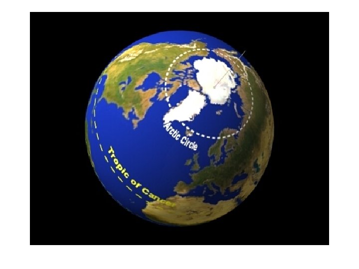 The location of the two “circles”—the Arctic and Antarctic—is also determined by the tilt of the Earth. We use the latitude of the North or South Pole (90°N or 90°S) and subtract the 23½ degree tilt of the Earth. That’s how we know where the circles are: 66½°N and 66½° S.
