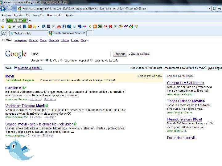 Twitter: Red social ¡ Sistema de difusión rápida de información a mucha gente a la vez, con cerca de 45 millones de usuarios en todo el mundo. ¡ Su éxito ha derivado en un sinfín de aplicaciones, que favorecen el intercambio de intereses, especialmente a nivel profesional. Twitter Interés Personal Interés Profesional Interés Político