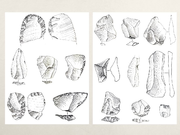 44. 45. 46. 47. 48. 49. 50. 51. 52. 53. 54. 55. 56. 57. 58. 59. 60. 61. 62. 63. Punte Burinante alterne Schegge ritoccate sulla faccia piana Schegge a ritocco erto "spesso" Schegge a ritocco alterno "spesso" Schegge a ritocco erto "sottile" Schegge a ritocco alterno "sottile" Schegge a ritocco bifacciale Punte di Tayac Triangoli ad incavo Pseudo-microbulini Incavi su estremità Hachoirs Rabots Punte peduncolate Strumenti peduncolati Choppers inversi Chopping-tools Diversi 56. Punte foliate bifacciali 51. 57.