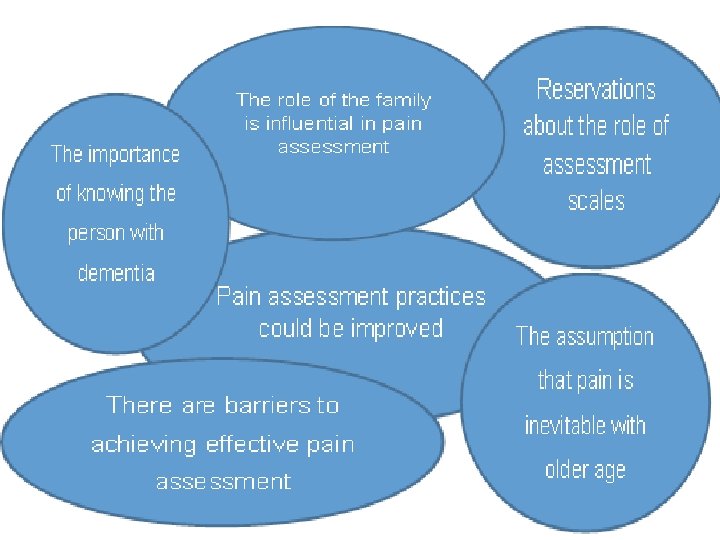 • The British Pain Society and British Geriatrics Society (2007) have produced guidance. They do not recommend a particular assessment tool but stipulate that the chosen tool should meet the following criteria: • • · · · · Observation of facial expressions Observation for guarding body movements Observing verbalisations Observing changes in interpersonal interactions Observing for changes in mental status Asking the person if they are in pain Observations are during movement Appropriate to the environment