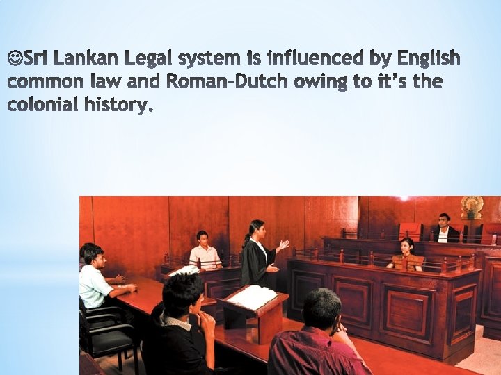 SRILANKAN LAW SYSTEM: The Legal system of Sri Lanka is a highly complex mixture of several laws.