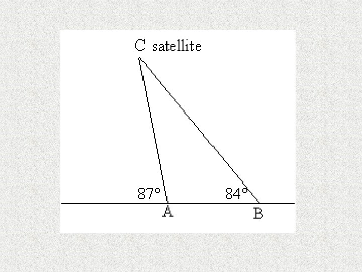 The path of a satellite orbiting the earth causes it to pass directly over two tracking stations A and B, which are 48 miles apart. When the satellite is on one side of the two stations, the angles of elevation at A and B are measured to be 87 degrees and 84 degrees. How far is the satellite from station A? How far is the satellite above the ground?