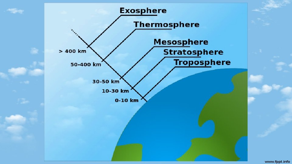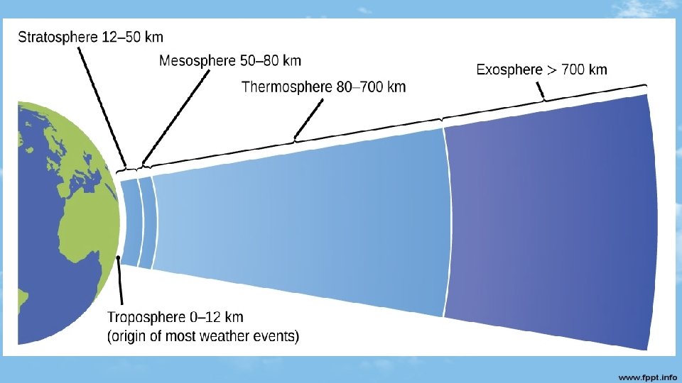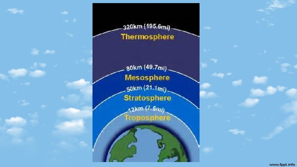 Layers of the Atmosphere Videos • https: //youtu. be/Bbw. EF 6 xvl. Vg - Earth’s atmosphere, 7: 53 min. , with Q/A • https: //youtu. be/Ac. Typs. D 09 z. I - What is atmosphere, 4: 22 min • https: //youtu. be/s. Dlx. SDCKc. Gs - Atmosphere Song, 3: 38 min