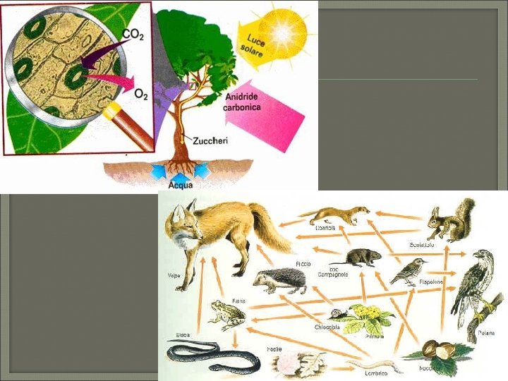 I vegetali per nutrirsi utilizzano tre sostanze inorganiche (ossia non viventi): Acqua, Sali minerali e anidride carbonica (CO 2). Partendo da queste sostanze, in presenza di energia luminosa (luce del Sole), attraverso il processo della fotosintesi clorofilliana si costruiscono da soli le sostanze di cui si nutriranno e che bruceranno per produrre energia. per questo motivo gli organismo vegetali sono chiamati organismi AUTOTROFI. Gli animali invece si nutrono di altri esseri viventi o di sostanze che da altri esseri viventi derivano, per questo sono detti organismi ETEROTROFI.