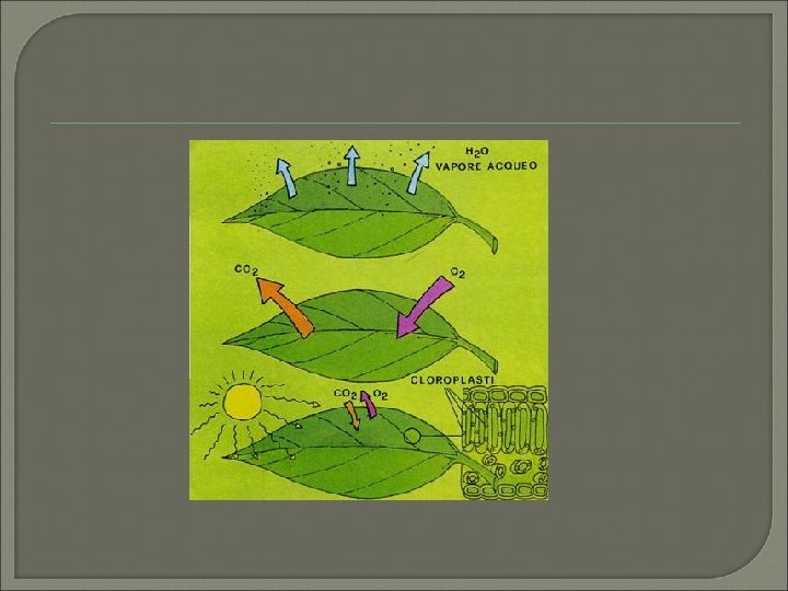 La respirazione Per poter utilizzare e sfruttare l’energia contenuta nelle sostanze introdotta nell’organismo attraverso la nutrizione, una funzione fondamentale è quella della respirazione. Tutti gli essere viventi, in ogni momento della loro vita respirano, ossia introducono nel loro organismo ossigeno (O 2) ed eliminano anidride carbonica (CO 2). Le piante inoltre durante il giorno (quindi in presenza di luce) introducono anche anidride carbonica (CO 2) ed eliminano ossigeno (O 2) per poter effettuare la fotosintesi clorofilliana.
