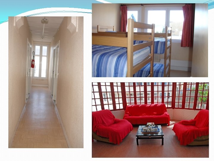 Les chambres La répartition est faite par l’enseignant Toutes les chambres sont équipées de lavabos. Des blocs sanitaires se trouvent dans le même bâtiment