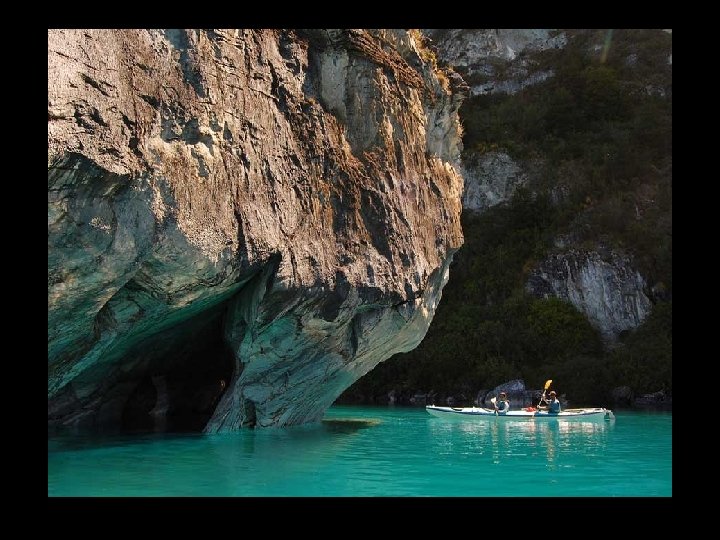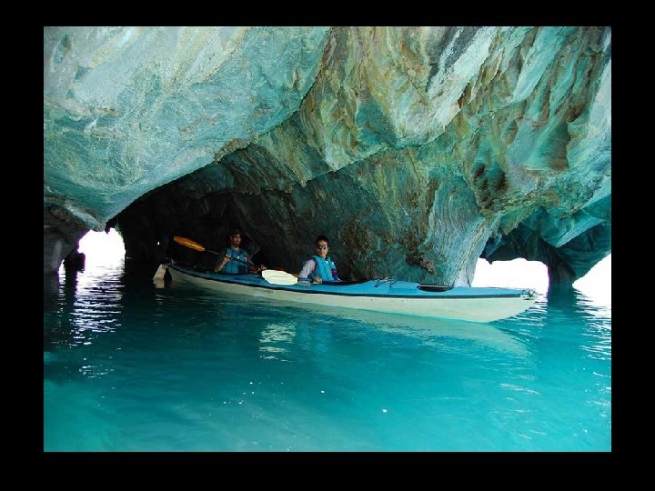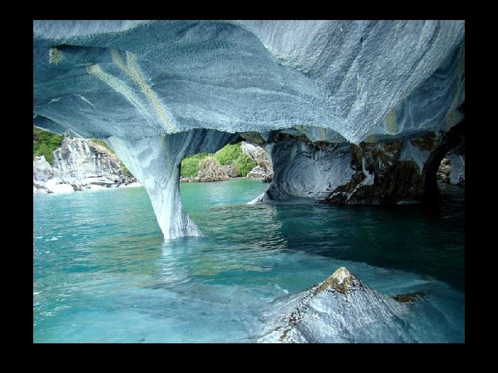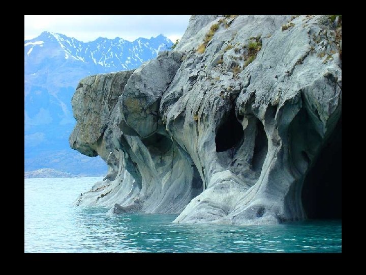 Cathédrale de marbre au Chili sur les rives du lac General Carrera, l'érosion par l'eau durant des milliers d'années a façonné la roche en de formes étranges. En période de basse eau, vous pouvez y naviguer à l’intérieur. Il s'agit d'une série d'îles et de grottes accessibles par petit bateau à partir de la ville de Puerto Río Tranquilo.