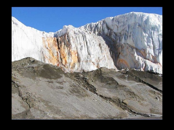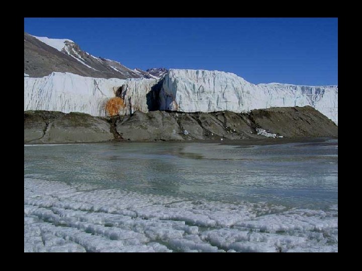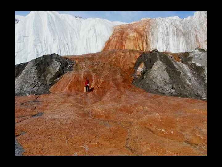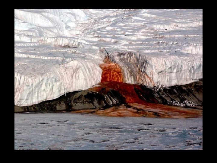 Le "sang Falls" est l'une des curiosités de l'Antarctique. Il s'agit d'une «rivière» d'eau extrêmement salée émanant des fissures du glacier Taylor. Ce torrent a été découvert en 1911, et des études récentes ont montré que c'est à cause d’une forte concentration en fer qu’est dû sa couleur.
