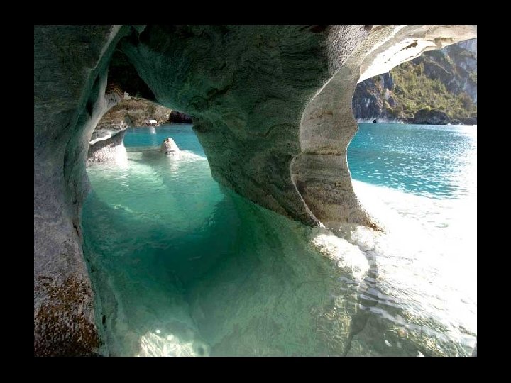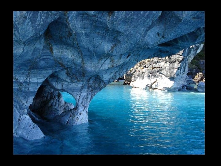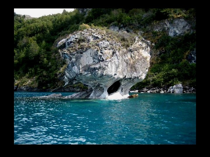 Cathédrale de marbre au Chili sur les rives du lac General Carrera, l'érosion par l'eau durant des milliers d'années a façonné la roche en de formes étranges. En période de basse eau, vous pouvez y naviguer à l’intérieur. Il s'agit d'une série d'îles et de grottes accessibles par petit bateau à partir de la ville de Puerto Río Tranquilo.