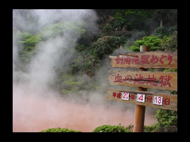 Reconnu comme l'un des Bepu jigoku (Enfer du Japon), sanglantes sources d'eau chaude composée de neuf spectaculaires sources d’eaux chaudes naturelles. La couleur rougeâtre est due à la forte teneur en fer.