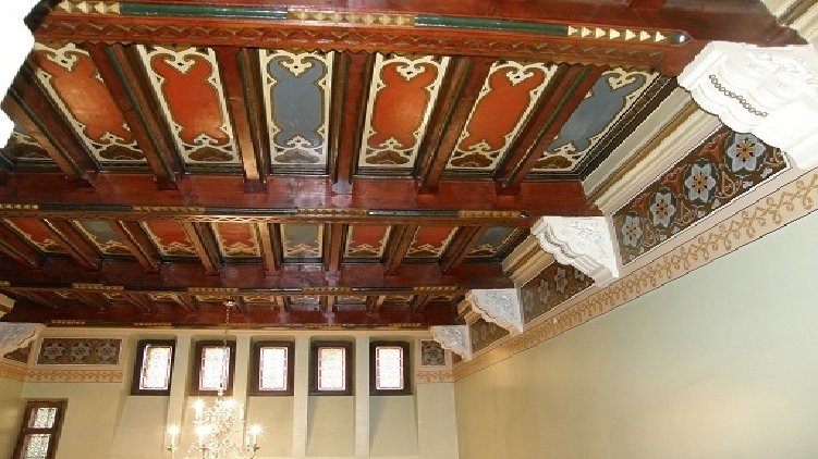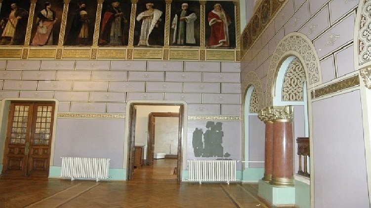 L’ensemble du château est composé de quatre corps. Le pavillon central a une surface au sol de 1200, 30 m² et 3148, 02 m² au total (sous-sol, rez et premier étage) et est construit à partir d'une fondation de béton, murs de pierre sculptés et toit de tuiles. Le bâtiment principal dispose d'un rez de chaussée et premier étage, pour une superficie totale de 403, 80 m 2. La villa dispose d'un niveau de 114, 41 m 2. Le quatrième corps est la chapelle. Le pavillon central abrite une collection de peintures héraldiques, de portraits représentant les familles liées par le mariage à la famille Cantacuzino et de portraits des membres de la famille. Le château a été décoré de vitraux, poutres peintes, balustrades en bois, en pierre ou en fer forgé, cheminées en pierre et ornements de mosaïques blanches. Lors de sa transformation en sanatorium, les murs étaient peints de manière uniforme. Après la restitution, une campagne de restauration des peintures murales originales, à été lancée.